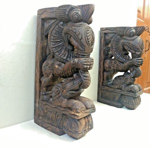 Wall Wooden Bracket Corbel Pair Temple Yalli Dragon Statue